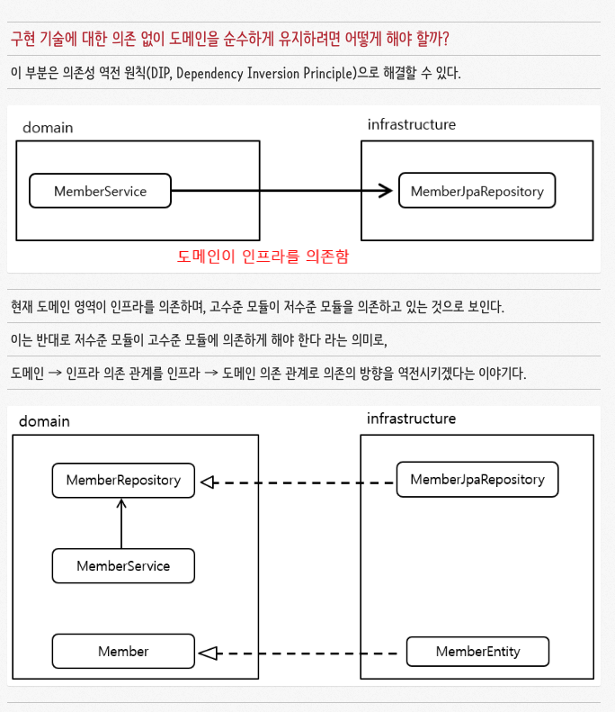 위 블로그에서는 도메인이 인프라를 의존하면 안된다고 한다.
