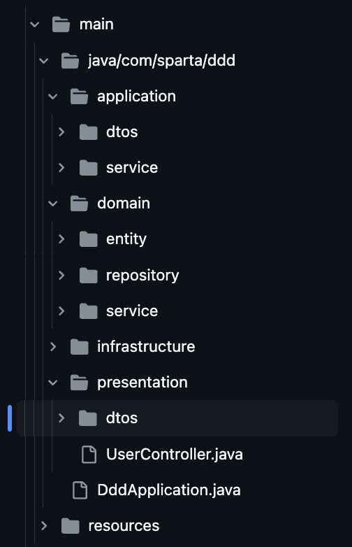 DDD (Domain-Driven Design) 아키텍처를 Spring Boot 애플리케이션에 구성하려면,