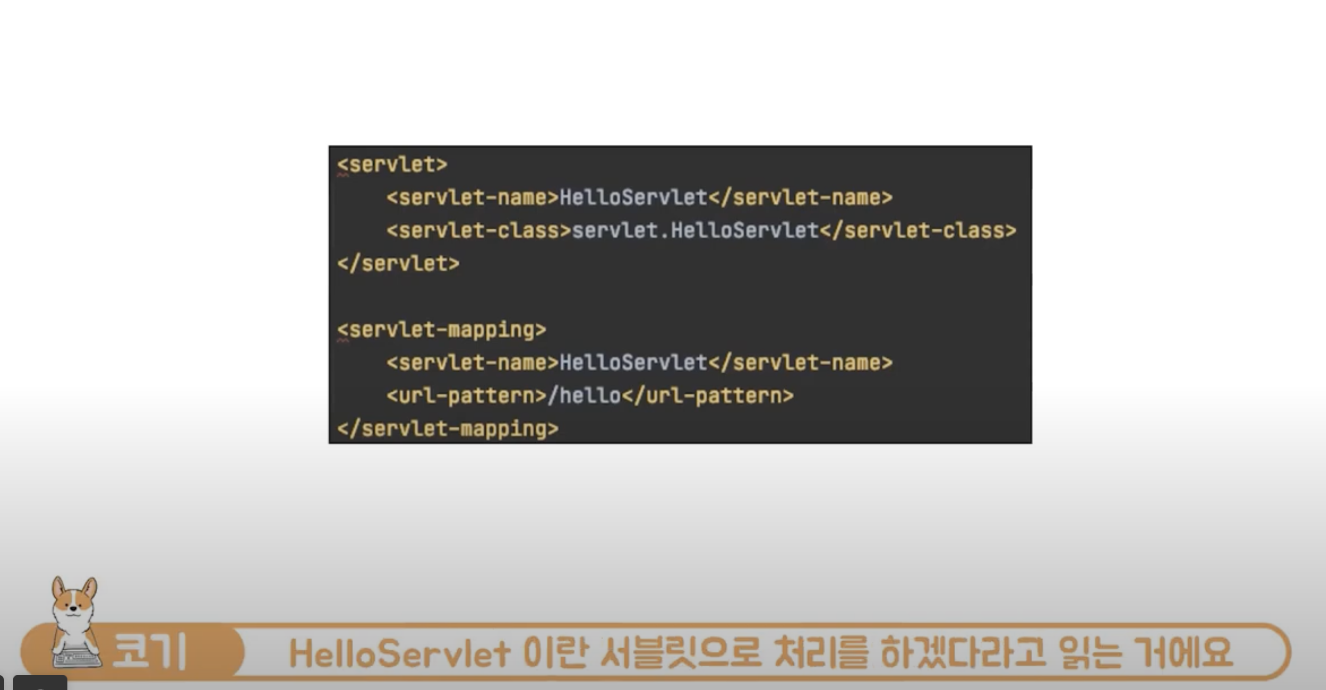 @WebServlet("/hello"): 이 어노테이션은 이 서블릿이 /hello URL에 매핑되도록 설정합니다.