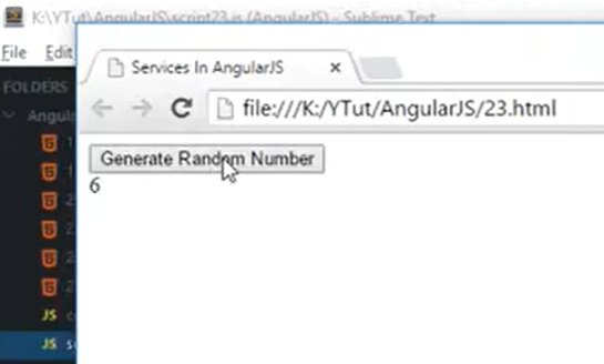 결과: AngularJS 싱글톤이라 random.generate()함수를 14번과 15번에서 각각 호출하였지만 결과는 똑같은 숫자가 나온다.